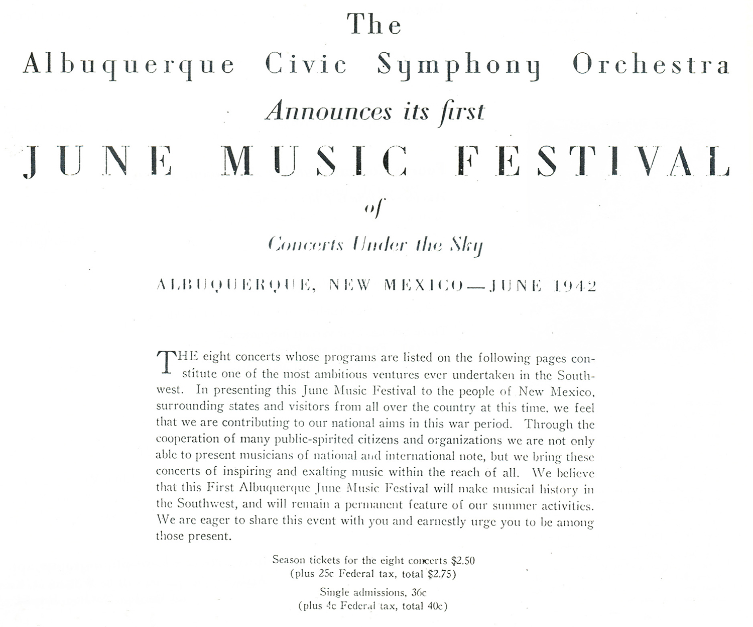 Program excerpts (top and above) from the first June music festival held at La Quinta Cultural Center in 1942