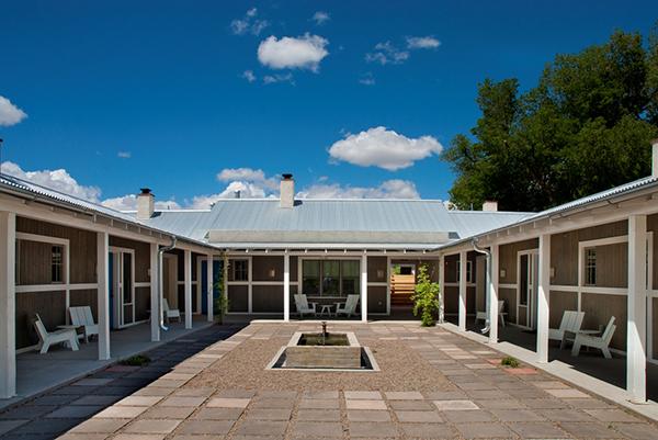 Inspired by our 1930s historic dairy buildings with pitched tin roofs and white stucco, interiors are clean and simple with a modern feel. Suites feature wood-burning fireplaces, hardwood floors, original artwork and incredible views of the gardens, acequias and the lotus pond. Several rooms have private patios, with seating areas that can be enjoyed in the New Mexico sun all year round.