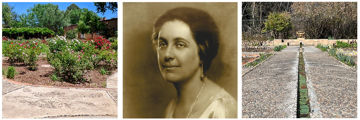 Her work here was made possible by the vision of Ruth Hanna McCormick Simms, who hired Greely when Los Poblanos Ranch was first established. Before moving to New Mexico, Ruth was a nationally recognized leader in the women’s suffrage movement. She believed deeply in civic progress and thoughtful reform, and that same sense of purpose shaped the early development of the property. By commissioning Greely, Ruth ensured the gardens would reflect refinement, permanence and beauty, laying the foundation for the cultural landscape we continue to steward today.
