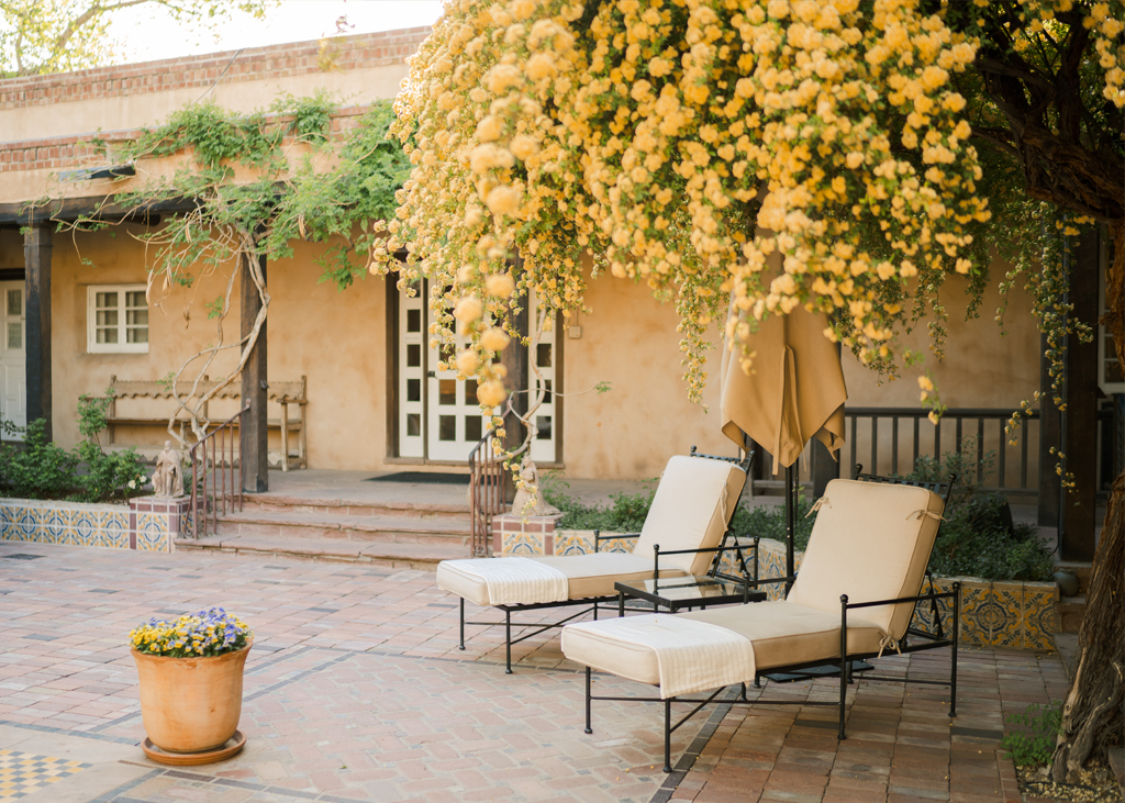 Experience true relaxation at the Hacienda Spa with a seasonal facial treatment or massage. Extend your session with a botanical tea in the historic courtyard or a refreshing cocktail beside our saltwater pool. Get active with classes in our Wellness Yurt, or take a walk, run or bike ride along the Rio Grande Bosque.