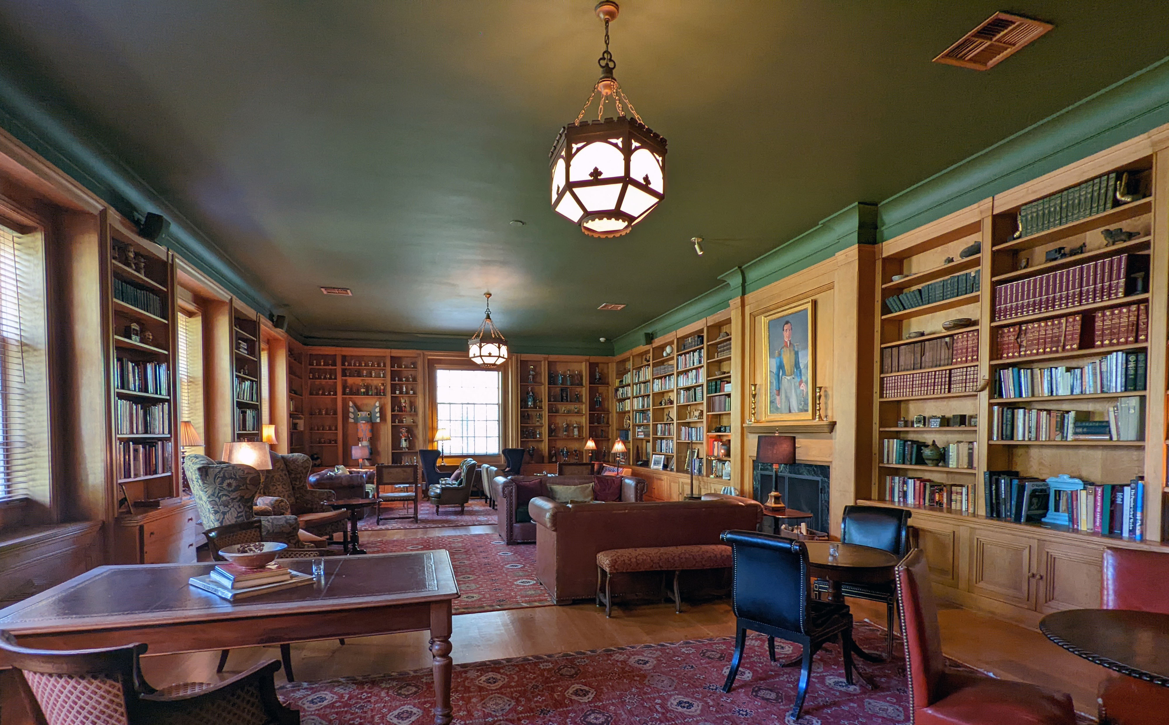 Entering through famed New Mexican artist Gustave Baumann’s carved deco doors, the Library is a grand yet warm space filled with a collection of books, vintage photographs and art. With its leather couches and deep wingback chairs flanking the fireplace, it is the perfect gathering place for cocktail hours and intimate parties.
