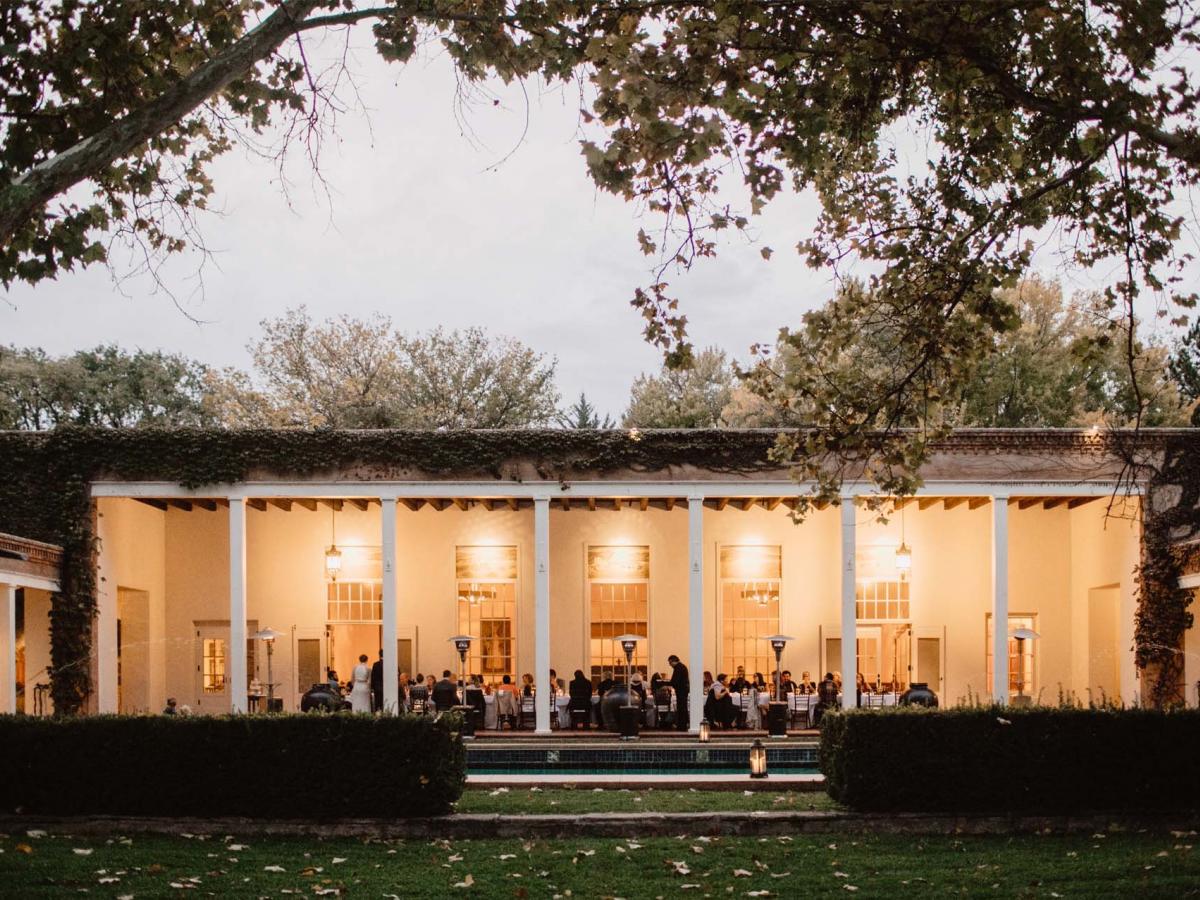 Spilling out from La Quinta, the vast, tree-lined East Lawn is a stunning location for a ceremony. With John Gaw Meem's architectural masterpiece and symmetrical sycamore trees to the west and views of the Sandia Mountains to the east, the grand space sets the stage to make beautiful memories.