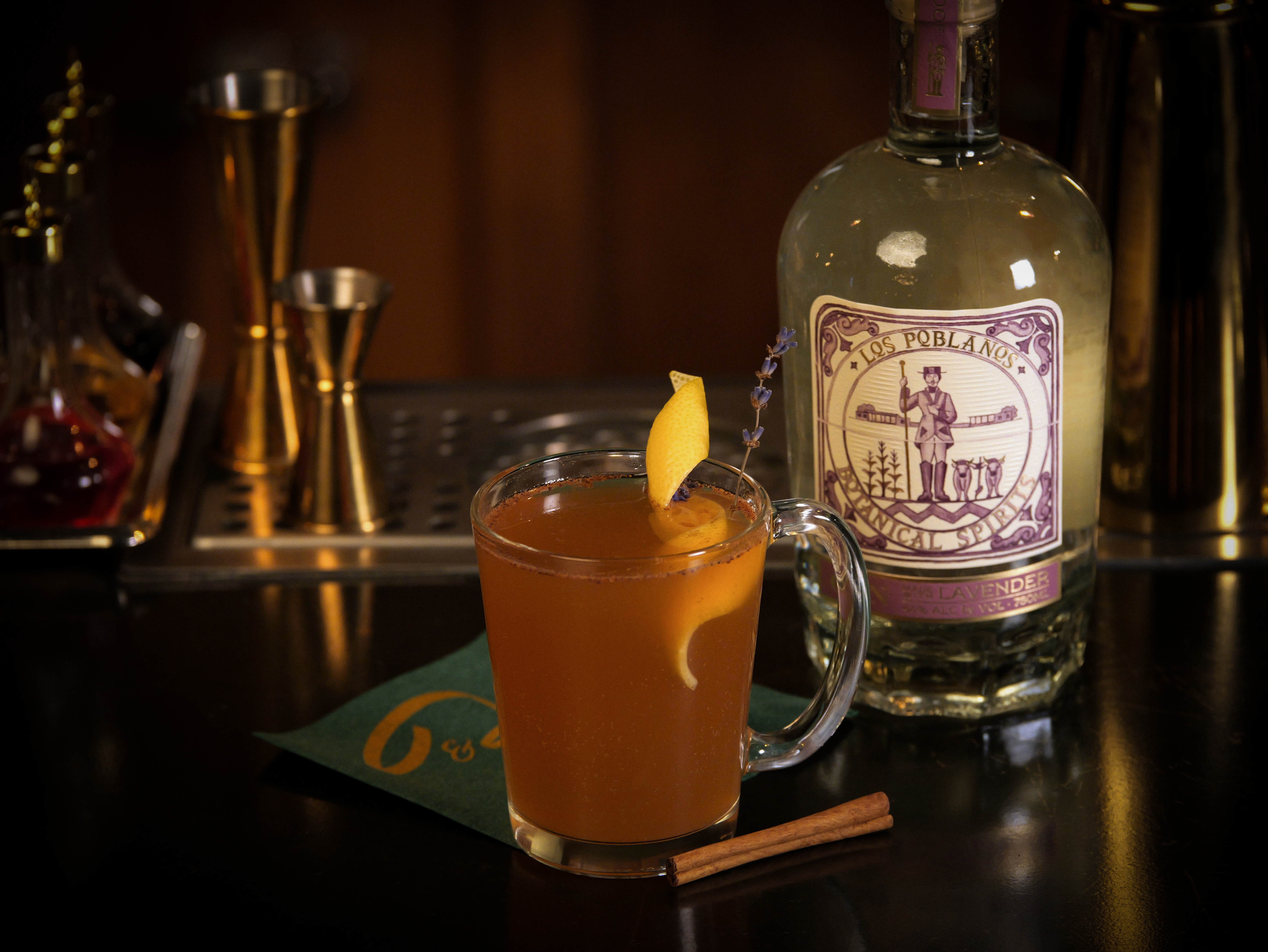 - garnish with a lemon twist, cinnamon stick, and fresh grated nutmeg