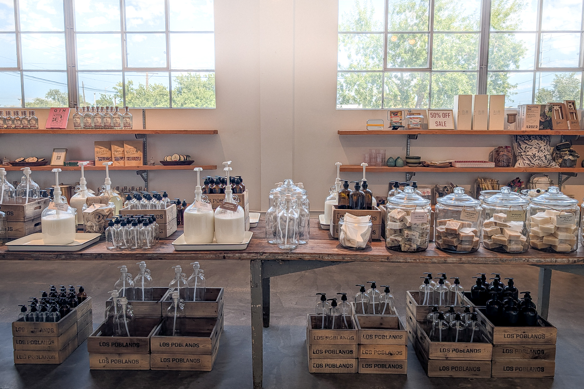The shop at Town & Ranch is housed in the LP Warehouse alongside our tasting room and distillery in the original 1940s Heaston’s Town and Ranch Tractor Supplies building. We distill lavender essential oil from the fields on-site at the farm every summer, but the LP Warehouse is where our soaps and oil-based lavender products come together. It was a natural fit to move goods straight from production to the shelves. Find provisions for an elevated nosh board, the perfect gift or your favorite bottle of Los Poblanos gin.