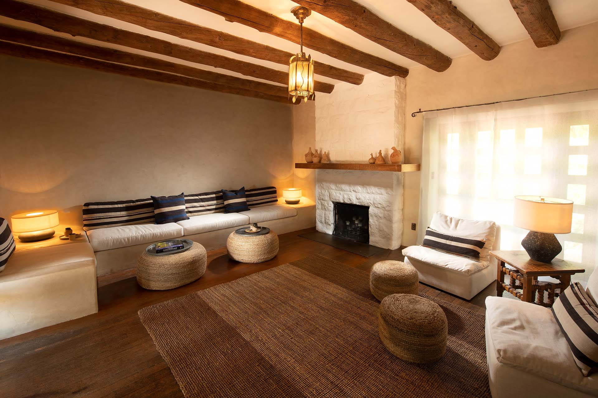 Entering through famed New Mexican artist Gustave Baumann’s carved deco doors, the Library is a grand yet warm space filled with a collection of books, vintage photographs and art. With its leather couches and deep wingback chairs flanking the fireplace, it is the perfect gathering place for cocktail hours and intimate parties.