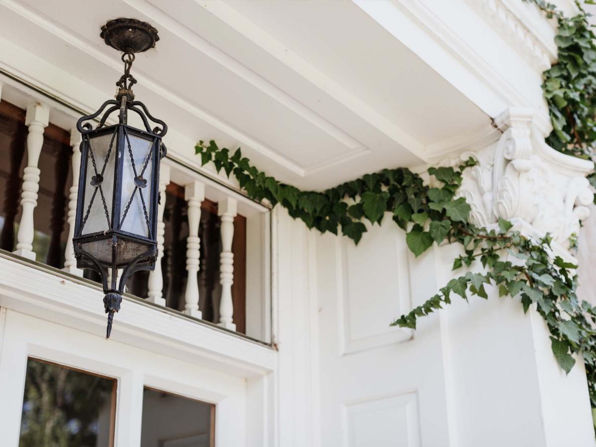 Dine under the shade of four stately sycamore trees on this private gated patio surrounded by lush ivy and winding wisteria.