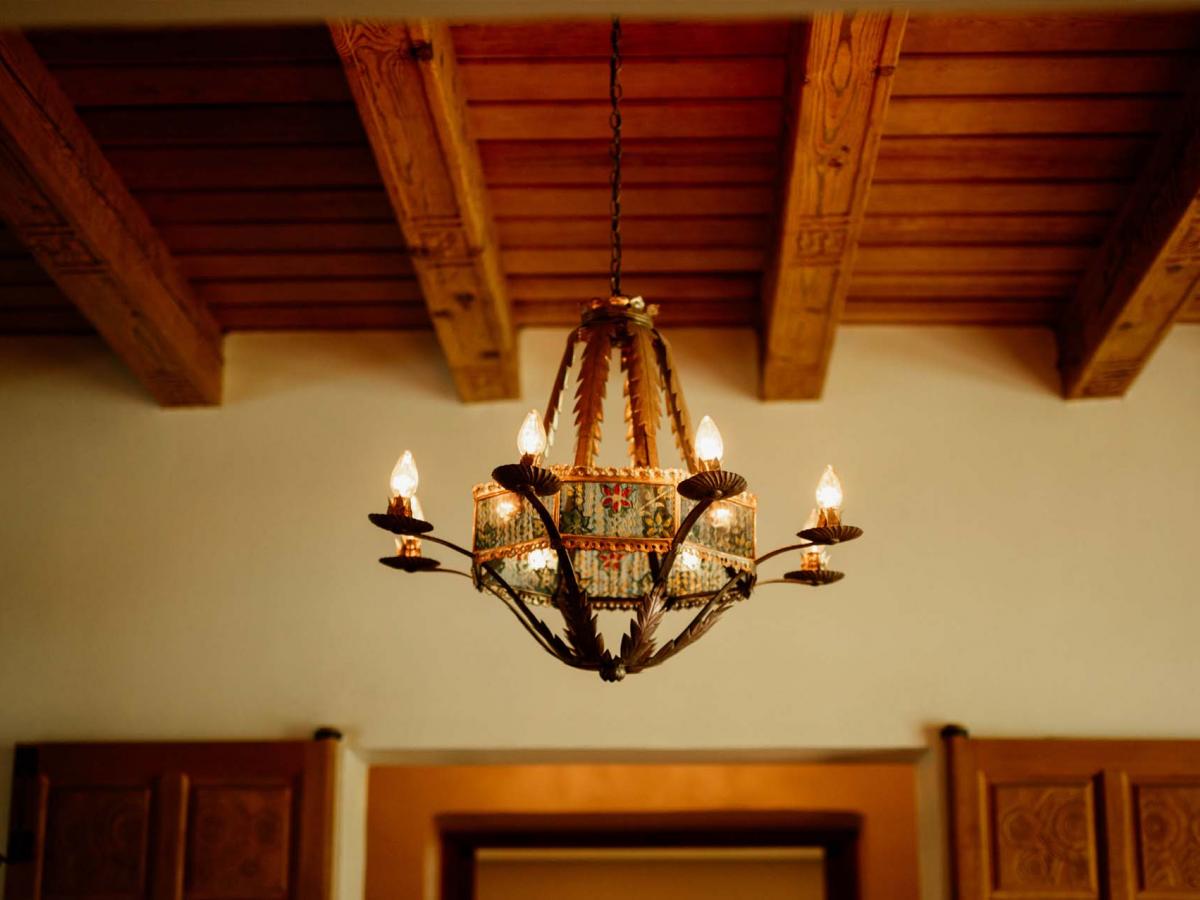 One of John Gaw Meem’s architectural masterpieces, the Grand Ballroom is undeniably one of the most stunning venues in New Mexico. The ballroom’s parquet walnut floors, elaborate carved ceilings, decorative Spanish tile and monumental fireplace make it a magnificent setting for truly memorable events. Four sets of French doors open to the surrounding gardens and the Grand Portal.